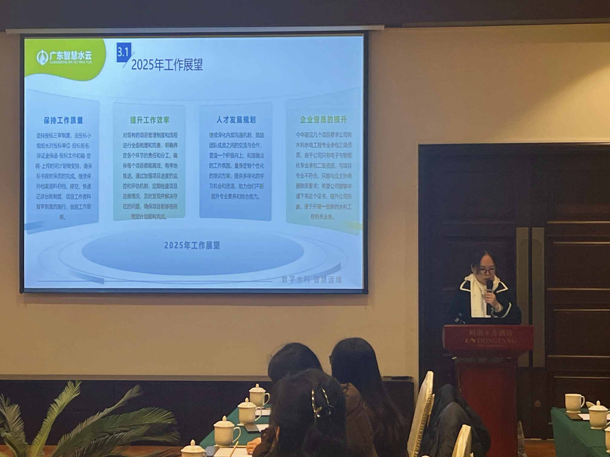 公司总经理充分肯定了各部门在2024年取得的成绩,对全体员工一年来的付出表示感谢。他指出,2025年公司主营业务继续坚持“智慧运维”这个压舱石不变,在运维数量和服务质量上要有更大的突破;抓住水利发展机遇,扩大公司业务营收;加强安全生产管理,始终将安全生产放在第一位;加强团队建设,完善公司人才补充机制,积极鼓励人员进行专业资质考试。